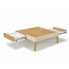 Pés em madeira maciça de fonte renovável com acabamento em verniz natural.