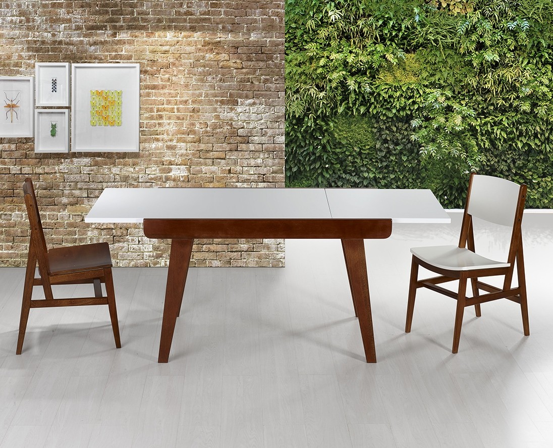 A Mesa extensível Maxi é criativa e superprática ideal para quem adora receber amigos para as refeições mais tem pouco espaço no dia-a-dia, com o sistema extensível ela acomoda mais dois lugares passando de 1,40 para quase 2 metros quando aberta (de 04 para 06 lugares). Seu sistema é super prático, você desliza o tampo maior e puxa o tampo menor que fica logo abaixo, ficou fácil garantir mais conforto para suas reuniões.